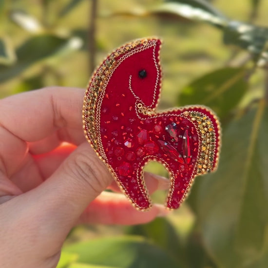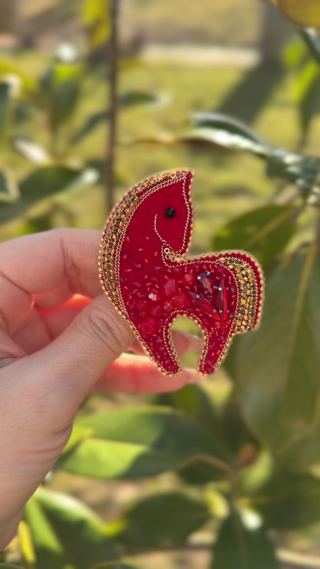 Broșă cusută manual cu mărgele diverse și catifea. Este căptușită cu piele naturală. Se livrează în cutie personalizată OZANA Fine Art.